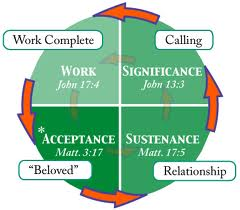 You start the cycle knowing that you are loved and accepted by God. You didn’t earn that. God just says he loves you. Sustenance is what I often talk about here. It comprises the Spiritual Disciplines and practices that deepens and enriches your understanding and relationship. Next is significance, or why are you here? What is the work God called you to do? Finally is accomplishment (called work complete in the diagram).