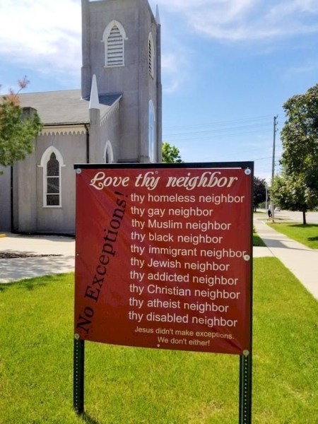 I “stole” this photo from outside of a church from a friend on Facebook. It says all I need to know about the situation: