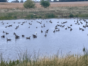 Ever wonder what story that goose might have had? How did it wind up with these “wild” geese?