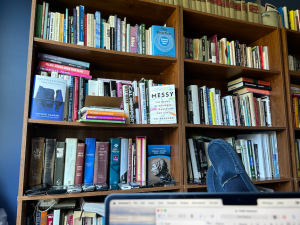 I sit back in my chair in my office. I often like to sit back with my feet resting on the desk and laptop in my, well, lap. Staring at my bookshelves, I see one of the several books I’ve turned facing out. This reminds me of a book I wish to remember.